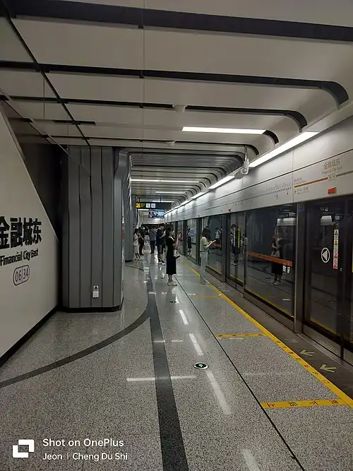Financial City East Station is a metro station in Chengdu, Sichuan, China. It was opened on December 18, 2020, with the opening of Line 6 and Line 9.[1][2][3]