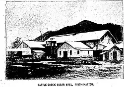 The Cattle Creek Sugar Mill commenced in 1906, closing in 1990.[7] It was located on the south side of Anzac Parade between the railway station and the school (21°08′27″S 148°38′04″E / 21.1407°S 148.6344°E).