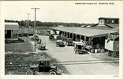 One successful venture of Finkbine-Guild and Mississippi Farms Company was the construction of a factory in Wiggins for processing farm produce. The American Pickle and Canning Company was formed to operate what became known as the ‘pickle factory'. At first, the plant processed pickles, tomatoes, beans, and sweet potatoes,[11] but within a few years, pickles became its sole product. At one time, it was the largest pickle processing plant in the world.[12] Through time, the pickle factory changed ownership, becoming a part of Brown-Miller Company, then Beatrice Foods. Those larger food-processing companies consolidated their production at locations in other U.S. States, and the Wiggins pickle factory closed in 1983, ending the final legacy of the Finkbine-Guild era.[13]
