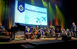 The Finnish Air Force Band (Finnish: Ilmavoimien soittokunta, ILMAVSK) is the official representative band of the Finnish Air Force. The band is based at the Luonetjärvi garrison in Jyväskylä. The 21-member band is led by Senior Conductor Juha Ketola. It was established in 1977 as the Luonetjärvi Garrison Band (Luonetjärven varuskuntasoittokunta). In 1990, the band was transferred under the command of the Air Force Academy, Finnish Air Force and was given its current title of Finnish Air Force Band. When marching on parade, the unit performs as a wind band. The band is one of the only bands in the Finnish Defence Force to maintain a fanfare team.[1]