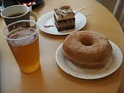 Finland has the highest coffee consumption per capita in the world, averaging 12 kilograms (26 lb) of coffee per person annually.[18] It is typical for a Finn to drink coffee continuously throughout the day, often accompanied by a sweet bun or a sandwich. Most workplaces allocate time for coffee breaks and serving coffee is very likely to happen to a visitor to a private home. Finns consider it as a small courtesy.