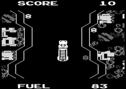 Flashing arrows appear on the course to indicate correct turns at intersections. The amount of time left in a play session is indicated by the amount of fuel left. Players can select from an easy or hard course.[5] Along with their scores, players are given a driver rating out of "Sorry", "So-So", "Good", or "Ace".[2][6]