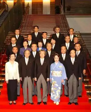 ![]() Prime Minister Junichiro Koizumi (front row, centre) with his reshuffled cabinet inside the Kantei, September 22, 2003 | |