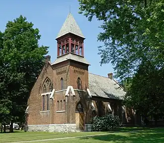 First Methodist Episcopal Church of St. Johnsville, also known as the United Methodist Church of St. Johnsville, is a historic Methodist Episcopal church located at St. Johnsville, Montgomery County, New York. The church was built in 1879, and is a one-story, Gothic Revival style brick building over a limestone block foundation. It has a slate gable roof and features a corner entrance tower and arched openings. The associated church parsonage or Lewis Snell House, was built in 1866. It is a 1 1/2-story, Italianate style brick dwelling with a low pitched hipped roof.[2]