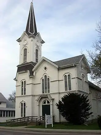 First Methodist Episcopal Church of Tioga Center, also known as United Methodist Church of Tioga Center, is a historic Methodist Episcopal church located at Tioga in Tioga County, New York. It is a vernacular Gothic Revival style rectangular structure built in 1872–1873. It is a two-story frame structure that features a tower with louvered belfry and spire in the northeast corner.[2]