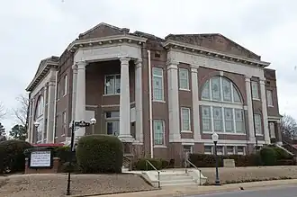 The First Presbyterian Church is a historic church building at 212 College Avenue in Clarksville, Arkansas. It is a two-story steel-framed structure, finished in brick. It is rectangular, with a central sanctuary flanked on the sides by office and meeting spaces. At the center of its roof is a dome, which is obscured by gabled parapets on the street-facing facades. The church was designed by Rogers based architect A.O. Clarke, and was completed in 1922 for a congregation founded in 1840. It is the finest example of Classical Revival architecture in Johnson County.[2]