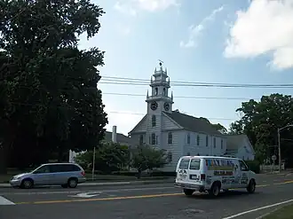First Presbyterian Church is a historic Presbyterian church at 175 East Main Street in Smithtown, Suffolk County, New York. It was built in 1825 and the sanctuary is a rectangular, two story frame structure measuring 56 feet (17 m) by 34 feet (10 m). It is sheathed in wood shingles and covered by a gable roof. It features an engaged, square tower surmounted by a tiered, balustraded belfry. The tower has a Palladian window at its second level.[2]