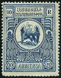 Modern post-Soviet historiography retroactively refers to the Armenian polity as the First Republic of Armenia (Հայաստանի Առաջին Հանրապետություն)[11] or the First Republic for short.[12] Other names of the state include the Araratian Republic[13] (Արարատյան հանրապետություն, 'Ararat Republic'), as the republic was largely based around Mount Ararat;[14] Further names include the Republic of Erivan,[15] and the Erivan Republic,[16] as Yerevan was the principal city of the republic. These terms were often used by Ottoman Armenians and the Armenian diaspora who regarded the country as "only a dusty province without Ottoman Armenia whose salvation Armenians had been seeking for 40 years".[17] It has also been known as the Dashnak Republic due to the fact that the Dashnaks were the dominant political force in the country.[18] During the Soviet-era, the Soviet Armenian Encyclopedia referred to the state as the Bourgeois Republic of Armenia (Հայաստանի Բուրժուական Հանրապետություն).[19]