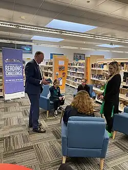 Rockliff was sworn in as Premier and minister for two other departments on 8 April 2022, along with Michael Ferguson as Deputy Premier and Treasurer.[2][3] The remaining ministerial positions were announced on 11 April, with Jo Palmer elevated to the cabinet.[4][5][6] The swearing in by the Governor occurred the following day on 12 April.[7] On 23 July 2023, Rockliff announced another reshuffle, including the creation of a new portfolio (Minister for Stadia and Events, which was created to assist the construction of a new stadium for Tasmania Football Club).[8]