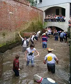 The Fischertag (German pronunciation: [ˈfɪʃɐˌtaːk], lit.'Fishermen's Day') is a traditional festival of the town of Memmingen, Germany. The town creek is fished out to be drained and cleaned, and at the same time the "Fisherman's king" is determined among almost 1,200 fishermen. Every year 30,000 to 40,000 people come to the festival as participants or spectators.