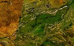 It flows through three shires: Wyndham-East Kimberley, Halls Creek and Derby-West Kimberley are found within the catchment area. The two main population centres of Derby and Fitzroy Crossing and 57 smaller Aboriginal communities are also found in the watershed making it home to about 7,000 people of which 80% are Aboriginal.[12] The catchment area of the Fitzroy river was found in 2012 to be extensively pegged by mineral exploration companies[13]