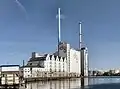 The Five Sisters (Danish: De fem søstre) is a building and silo complex in Aarhus, Denmark which is an Industrial Heritage Site of Denmark. It is situated on the Mellemarmen pier on the industrial section of the Port of Aarhus in Aarhus city center. The silos represent the transition from manual to mechanized labor during the second wave of industrialization in the early 20th century and are symptomatic of the relationship between agriculture, industry and transport in the city. The Five Sisters were the first reinforced concrete structure to be erected in Aarhus and at the time it was the only building apart from the cathedral to rise above the city.
