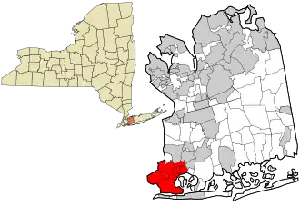 2. ^ Shaman, Diana. "If You're Thinking Of Living In: Five Towns", The New York Times, November 20, 1988. Accessed March 24, 2022. "The area's name dates to 1931, when Community Chest organizers pooled their efforts and formed the Five Towns Community Chest to serve Inwood, Lawrence, Cedarhurst, Woodmere and Hewlett. The name clung, even though Cedarhurst and Lawrence are incorporated villages. The Five Towns area, which lies within the Town of Hempstead, also includes five other villages - Hewlett Bay Park, Hewlett Harbor, Hewlett Neck, Woodsburgh and East Rockaway. Many also include Atlantic Beach, which is in the Lawrence Public School District."