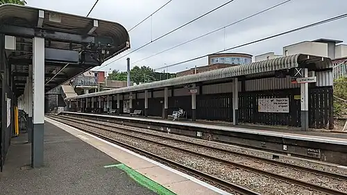 The station is served by West Midlands Trains with local Transport for West Midlands branded "Cross-City" services, operated using Class 323 Electric multiple units (EMUs)[6] until September 2024 and currently by Class 730 EMUs.[7]