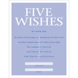 Five Wishes is a United States advance directive created by the non-profit organization Aging with Dignity. It has been described as the "living will with a heart and soul".[1]