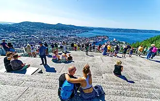 At Fløyfjellet, there is also a viewpoint. In 2002 the site was rebuilt for 46 million NOK, the viewpoint was extended and is called Fløytrappene. This is a broad staircase which goes from the station stop to Fløien Folkerestaurant.