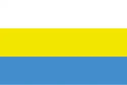 This misattributed flag is a horizontal tricolor, from top to bottom white, pure yellow (#f3e600), and moderate blue (#438dcc). The flag was designed in October 1921. A mobile history game used this flag to represent the native Chukchi people.