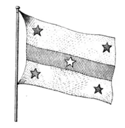 | Design | Three horizontal stripes of equal width in the order white-blue-white charged with a blue star in each corner and a white star in the middle. |
