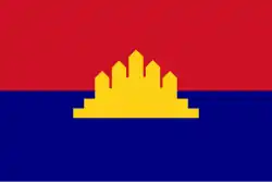 | Design | Red, blue field, a yellow five-towered Angkor Wat in the center |