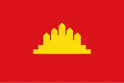 | Design | Red field with a yellow five-towered Angkor Wat silhouette in the center |