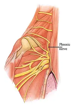 Diaphragmatic spasm is easily tested for and treated by short term interruption of the phrenic nerve. The nerve runs down the outside of the neck where the neck joins to the shoulder, within a bundle of muscles and tendons at this junction. The cluster can be pinched gently and held for a few seconds each time. Kittens with spasmodic FCKS will show almost immediate improvement, but the treatment may need to be repeated several times over a few days as the spasm may have a tendency to recur, particularly after suckling. It is sometimes evident that the spasm only affects one side of the diaphragm, as interruption of the nerve is only necessary or effective on one side.