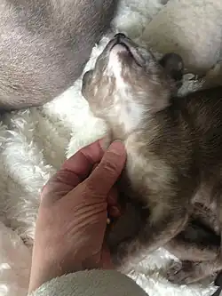 Some breeders have found that applying manual pressure to the sides of the ribcage can help, as the chest rounds out with encouragement (gentle pressure timed to coincide with the natural movement of the thorax in breathing), but usually the chest goes flat again as soon as massage is discontinued. It may however help in encouraging the lungs to inflate a little more with each breath, but should not be used if it causes distress to the kitten. Many breeders report that affected kittens seem to enjoy massage. Encouraging a kitten to lie on its side can be helpful, and draping another kitten (or the mother's arm) over it while it is sleeping on its side places a gentle continuous pressure on the ribcage which may also be helpful. If the kitten is uncomfortable it will move away. (It is important to ensure that pressure is not placed on the kitten if it is lying flat on its chest.)