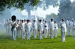 Officially formed in November 1852, the United States Naval Academy Band provides musical support to the Brigade of Midshipmen and the surrounding community. Special events include the Side-By-Side concert featuring local High School musicians chosen to play with the band under the baton of a special guest conductor, and the annual Finale concert featuring all Naval Academy Band ensembles and closing with Tchaikovsky's "1812 Overture," complete with live cannon fire! Smaller ensembles are featured in the Chamber Music Series, a variety of recitals planned and presented by individual band members.[5]
