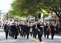 Navy Band Southeast's Parade Band marching during the annual Cherry Blossom Festival in Macon, Georgia, 2017.