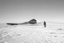 Fletcher's Ice Island or T-3 was an iceberg discovered by U.S. Air Force Colonel Joseph O. Fletcher. Between 1952 and 1978 it was used as a staffed scientific drift station that included huts, a power plant, and a runway for wheeled aircraft.[1] The iceberg was a thick tabular sheet of glacial ice that drifted throughout the central Arctic Ocean in a clockwise direction. First inhabited in 1952 as an arctic weather report station, it was abandoned in 1954 but reinhabited on two subsequent occasions. The station was inhabited mainly by scientists along with a few military crewmen and was resupplied during its existence primarily by military planes operating from Utqiagvik, Alaska. The iceberg was later occupied by the Naval Arctic Research Laboratory, and served as a base of operations for the Navy's arctic research projects such as sea bottom and ocean swell studies, seismographic activities, meteorological studies and other classified projects under the direction of the Department of Defense.[2] Before the era of satellites, the research station on T-3 had been a valuable site for measurements of the atmosphere in the Arctic.