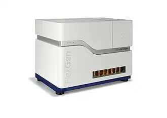 The FlexArrayer is an in-house custom oligonucleotide synthesis instrument. The FlexArrayer facilitates high throughput synthesis of FleXelect oligopools for in-solution target enrichment as well as custom microarray production. The FlexArrayer is also applicable for array based re-sequencing.[4]