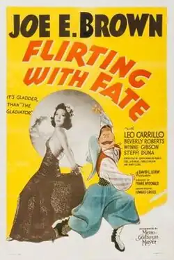 Flirting with Fate is a 1938 American comedy film directed by Frank McDonald and written by Joseph Moncure March, Charlie Melson and Ethel La Blanche. The film stars Joe E. Brown, Leo Carrillo, Beverly Roberts, Wynne Gibson, Steffi Duna, Charles Judels and Stanley Fields. The film was released on December 2, 1938, by Metro-Goldwyn-Mayer.[1][2]