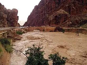 Floods in Algeria are caused by heavy rainfall, particularly during the autumn and winter months, with an average of 174 flood events occurring annually.[1] Flash floods account for approximately 62.20% of these events, involving major rivers such as the El Harrach, Chélif, and M'zab.[2] A significant flood event occurred in Bab El Oued in November 2001, resulting in 900 fatalities and substantial economic losses. Between 2000 and 2011, Algeria reported 1,014 deaths due to flooding, Urbanization and storm drainage systems have been identified as factors related to flood risk.[3]