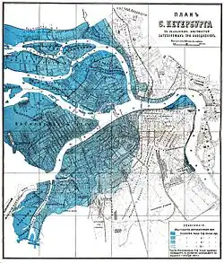 A map of easily flooded areas of St. Petersburg from Brockhaus and Efron Encyclopedic Dictionary of 1907.