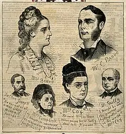 Interest in the case reached its peak when Florence testified for three days starting 3 August 1876.[3][10]: 248 According author James Ruddick, "For Florence Bravo, the Coroner's inquest was the worst experience of her life."[4]: 92 Rather than focusing on the circumstances leading up to Charles' death, his family's lawyers became fixated with proving that Florence had continued her affair with Gully during their marriage, and subjected Florence, Gully and other witnesses to repeated questions about her past "sexual conduct."[3][4]: 92–93 The lurid details of her "criminal intimacy" with Gully before marrying Charles were covered in depth, in national newspapers such as the Telegraph and The Times, as well as penny newspapers such as The Illustrated Police News,[1][3] and telegraphed by correspondents to newspapers overseas.[4] Florence broke down repeatedly, but on the third day of questioning about details of her sexual history with Gully, she finally objected.[10]: 264 According to The Times, she said "part with tragic force and part tearfully" and with "perfectly just indignation":[10]
