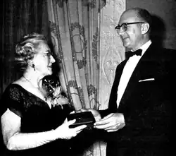 ![]() Receiving the Society of Cosmetic Chemists Medal, 1956 | |