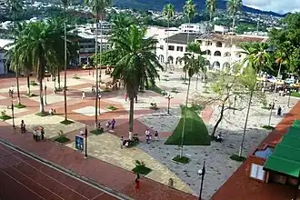 - Curiplaya Building: A historic building of colonial architecture built in the 1950s. This building served as a hotel, currently it houses some cultural entities of the municipality and the department.[13] In addition it is the headquarters of the Palace of Culture and Fine Arts of the Amazon (Spanish: Palacio de la Cultura y Bellas Artes de la Amazonía).[14] The building was declared a national cultural property in 2000 by the Colombian Ministry of Culture.[15] The name "Curiplaya" means "Golden Beach" in the Witoto language.[14]