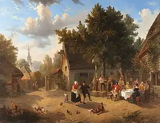 At first, he painted scenes from villages and small town markets. Later, he turned to landscapes from the Kempen region, and became an ardent supporter of painting en plein air. Much of his work was done in the artists' colony at Wechelderzande, together with Isidore Meyers, Jacques Rosseels (1828–1912), and Adriaan Jozef Heymans; a member of the Kalmthoutse School of landscape painting.