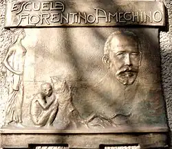 Ameghino was born on September 19, 1853, in Tessi, an hamlet of Moneglia, a municipality of Liguria in Italy, in what was then the Kingdom of Sardinia and moved to Argentina with his parents when he was 18 months old.[1] Ameghino was a self-taught naturalist, and focused his study on the lands of the southern Pampas. He formed one of the largest collections of fossils of the world at the time, which served him as base for numerous geological and paleontological studies. Ameghino was a leading pioneer in the development of phylogenetics and of the paleontological approach of evolutionary biology. He also investigated the possible presence of prehistoric man in the Pampas and made several controversial claims about human origins in South America. Domingo Faustino Sarmiento, president of Argentina 1868–1874, described Ameghino as "a countryman from Mercedes that nobody knows of here, but that is admired by scholars worldwide."