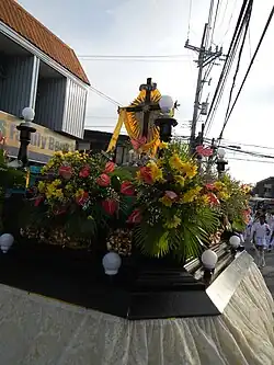 - The Cross or the Image of Saint Helena with the Cross is used for Santa Cruzan, while the Image of Blessed Mother is used for Flores de Mayo that is the distinction of the two festivals but some organizers mixed the two festivals together in one celebration, Flores and Santa Cruzan.