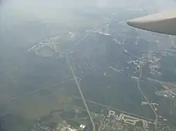 Within the SR 528/SR 407/I-95 triangle is a swampland containing the southern unit of St. Johns National Wildlife Refuge, a popular resting area for migrating birds (the northern unit is two miles (3 km) to the north, adjacent to I-95 and SR 50), and just to the west of the triangle is Tosohatchee Wildlife Management Area, which extends from SR 50 southward to just south of SR 520 in nearby Orange County.[3]