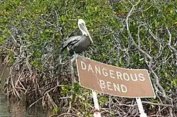The branches of mangroves serve as roosts and rookeries for coastal and wading birds, such as the brown pelican (Oelicanus occidentalis), roseate spoonbill (Ajajia ajaia), frigatebird (Fregata magnificans), double-crested cormorant (Phalacrocorax carbo), belted kingfisher (Megaceryle alcyon), brown noddy (Anous stolidus), great white heron and Wurdemann's heron, color phases of the great blue heron (Adrea herodias), osprey (Pandion haliaetus), snowy egret (Egretta thula), green heron (Butorides striatus), reddish egret (Dichromanassa rufescens) and greater yellowlegs (Tringa melanoleuca).