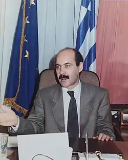 From October 1993 to September 1995, he was Deputy Minister of Agriculture in the last government of Andreas Papandreou. He handled Agriculture and Fisheries issues in the European Union, especially in the first half of 1994, when Greece held the presidency of the EU and patented over 150 products as PDO and PGI (oils, cheeses, fruits, legumes, etc.), including the Greek Feta.[3] In the period 1996–1997 he was a consultant at the Ministry of Foreign Affairs and then a consultant at "SEKAP" industry. He published two books on Greek agriculture within the framework of the European Union ("Greek Agriculture and the International Environment" by Livani's Publishing) and regularly wrote to the Greek Press.