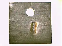 Porosity results are determined by the distribution, number and sizes of dark spots on the materials under test. Again, the dark spots are due to reaction of the moist sulfur vapors with the underlying silver or copper material. One may choose to include silver or both silver and copper reference coupons into the humid sulfur test. The accumulation of copper(I) sulfate and silver (I) sulfate deposits on the coupons, determined by weight change, allows comparisons to ISA 71.04 severity levels for mixed flowing gas testing.[9]