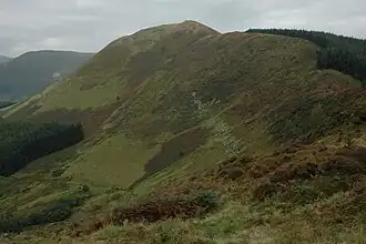 In the 1870s its eastern and northern slopes were planted with trees by Sir Edmund Buckley, the lord of the manor of Mawddwy.[2] On the northern flank is Llyn Foel Dinas, a lake which was dammed to form a reservoir, providing the water supply to Buckley's manor house in Dinas Mawddwy.[3] The southern shoulder of the mountain was the location of Minllyn quarry from the 1790s to 1925.[4]