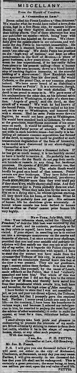 ![]() "A Piratical Attorney" Signal of Liberty, September 15, 1841 | |