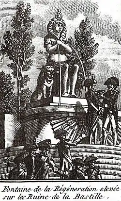 The fontaine de la Régénération or fontaine d'Isis is a monument erected in 1793 at the former site of the Bastille in Paris, during a festival to commemorate the anniversary of 10 August, 1792.