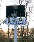 In the grounds of the Château de la Boissière, in the same commune, a ten-meter section of the aqueduct vault was unearthed in 1950.[85] It is these remains that have been classified as historic monuments.[86] Between the Cher and the hillside where the remains of the invert are visible, a small road has been named Rue de l'Aqueduc, possibly following the route of the ancient Bourges-Tours road on the left bank of the Cher.[87]