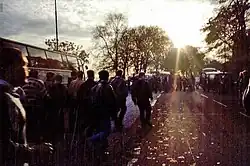 Leeds United also played two friendly matches at Easter Road. In August 1993 police resources were stretched as there were running battles between the gangs before and after the game near to pubs in the High Street and Rose Street area as well as vicious fighting outside Waverley station where a Leeds boy suffered serious head injuries.[6][7] For the next meeting in July 2004 the day before the match was due to be played Hibs boys rendezvoused with a couple of Leeds hooligans and took them to a pub near Meadowbank stadium called the Hop, Step and Jump which was intended to be used by the Leeds mob and then showed them the nearby Loch Inn which was designated for the CCS. There were no CCTV cameras covering this area and the intention was to use these two pubs on the day in order to set about each other without readily alerting the police. However, the next day Leeds boys declined the invitation and instead met up with some Hearts casuals for a drink in the Standing Order bar on George Street.[8] The only fighting that occurred before the match between the CCS and the Leeds Service Crew was a brief skirmish on Easter Road.[9] As Leeds lads started to leave the ground from half-time onwards there were a few more scuffles between small groups of each mob and near to Waverley station some Hibs boys were seen carrying knives[7]