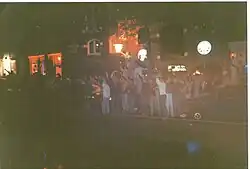 A Motherwell boy who attended a Hibernian match in Glasgow that season was pulled up in the crowd by Hibs casuals, which lead to an accepted friendship regarding the casual scene as primarily both clubs were in separate leagues that season. A few SS also made trips through to Edinburgh for nights out with their new Hibs pals and even turned up once for a match between Hibernian and Aberdeen.[40] In the December some Hibs boys met up with Motherwell's SS when the Lanarkshire club were in Edinburgh playing Meadowbank Thistle and Aberdeen were playing Hearts at Tynecastle and they were involved in fights with the ASC at Waverley station.[41] Normal hostilities arose between the two gangs the following season
