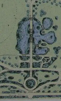 The park has two (originally three) major paths running east–west along the embankment which are bisected by a north–south path (the T.B. Drew Memorial Walk) which descends the embankment through a wisteria-covered arbour to Thomson Water Garden.